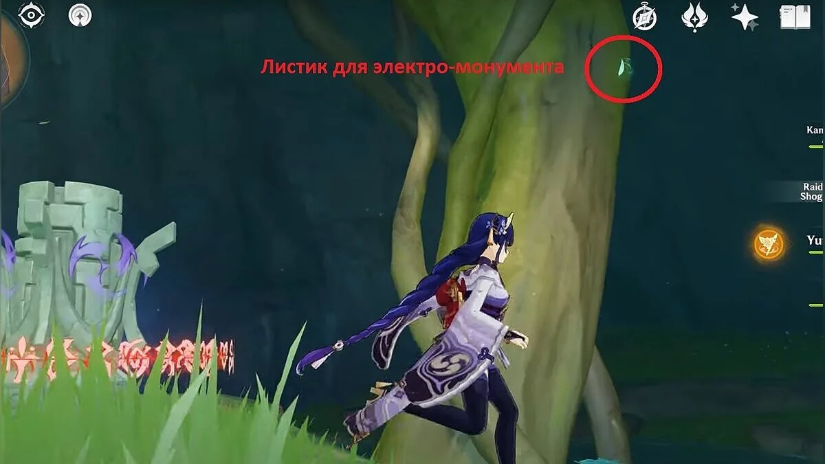 - Анемо-монумент. Заберитесь по корню наверх. Листок парит строго над тотемом.