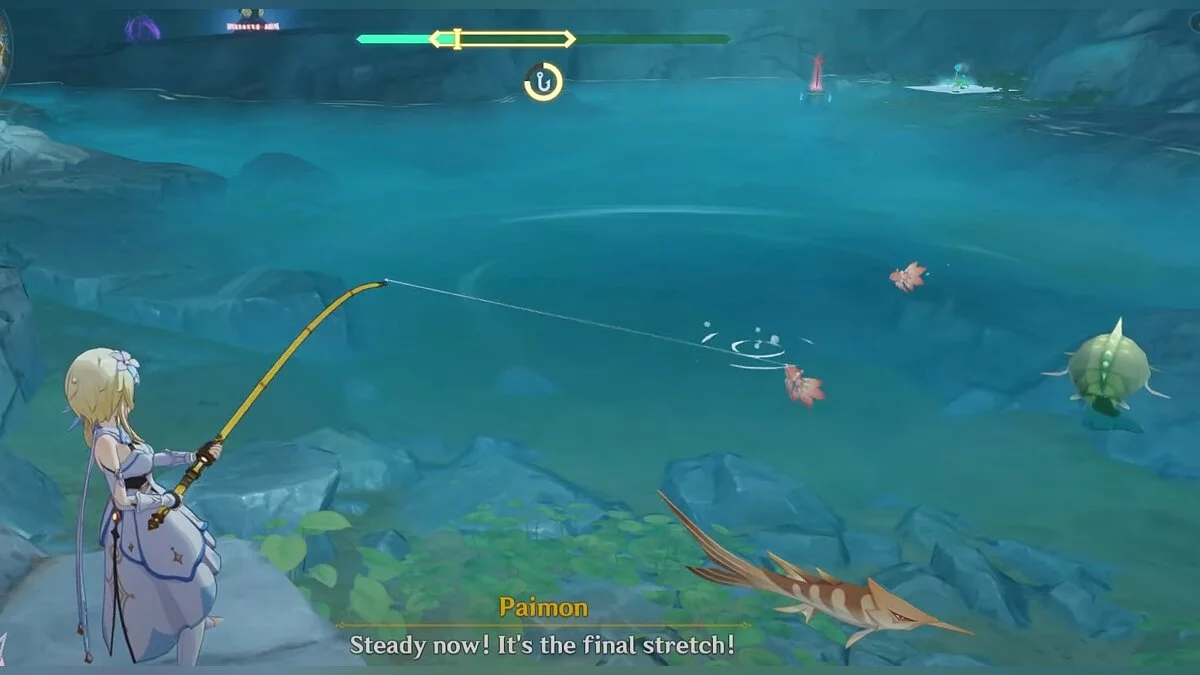 В этом водоёме вы должны поймать рыбу. Подробнее о механике рыбалки мы рассказали в отдельном гайде.