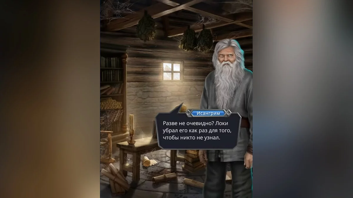 После разговора с Сагром героиня прошла внутрь дома, где у спального места Исангрима встретила Андвари.