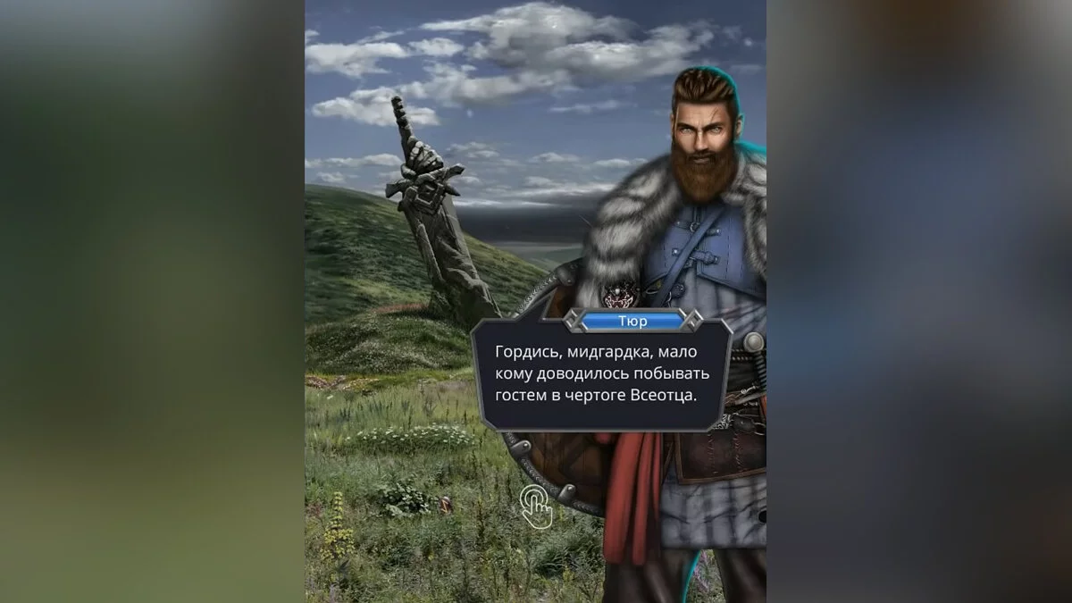 Появится Тюр, который захочет сопроводить отряд к Одину. При наличии пути Высокой славы Тюр посоветует героини гордится приглашением богов посетить Асгард. Девушка отправится в свои покои.