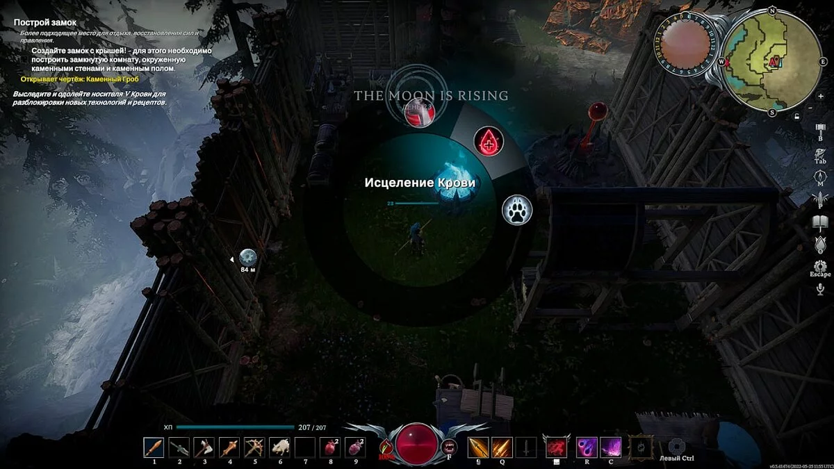Один из самых простых способов поправить здоровье — навык «Исцеление крови» (Blood Mend). Он доступен с самого начала игры, поэтому не потребует от вас долгой прокачки или сбора ресурсов. Однако для активации этого скилла придется потратить кровь. Нажмите Ctrl, чтобы открыть меню быстрого доступа и выбрать исцеление.