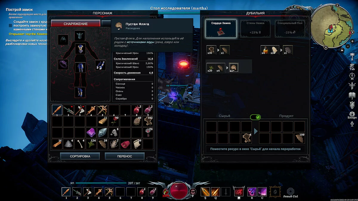 Не стоит пренебрегать и защитой от чеснока. На дубильном станке можно создать пустую флягу, а затем наполнить её водой. Как разблокировать этот станок, мы рассказали в отдельном руководстве. Это один из самых важных ресурсов для крафта отвара от чеснока (Minor Garlic Resistance Brew). Эффект, который вы получите, — сопротивление к чесноку в количестве 25 единиц на 25 минут. Благодаря зелью эффективность лечения многократно возрастет, а вы почувствуете себя гораздо безопаснее.