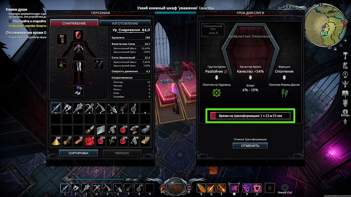 Враг будет очарован, а вам останется лишь сопроводить его в замок. Будьте осторожны, поскольку на обратном пути его могут убить. Подойдите к гробу и проверьте информацию по этому слуге. Нажмите «Конвертировать», чтобы запустить процесс создания и заплатить 100 единиц Эссенции крови. Запустится таймер, по окончании которого появится слуга. Обычно этот процесс занимает до двух часов реального времени. Всё зависит от группы крови, её качества и фракции завербованного персонажа.