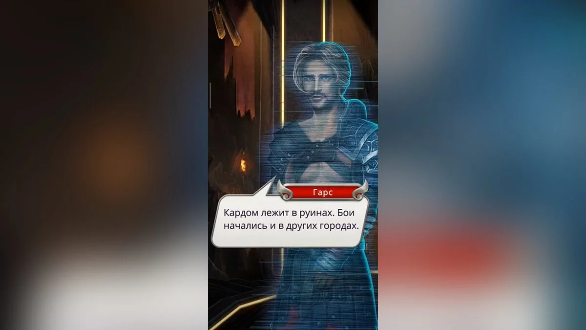 Через мгновение голограмма передаст силуэт Гарса. Он успеет сказать, что вся планета в огне и идёт страшная бойня. В этот момент связь прервётся, а Марк отметит, что это запись и она скоро возобновится.
