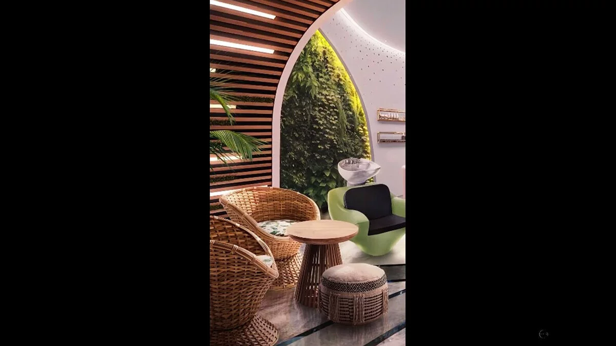 Дешон провожает героиню к массажному креслу и начинает мыть ей голову.