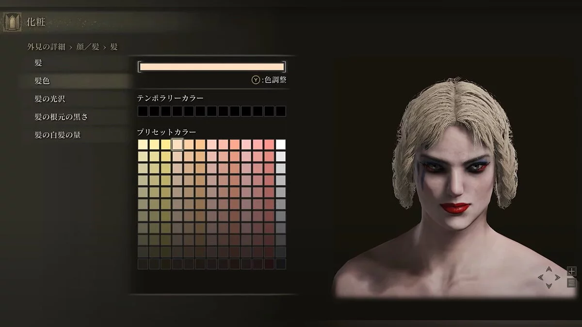 - Цвет волос: блонд (красный оттенок — 255, зелёный оттенок — 223, синий оттенок — 191);
