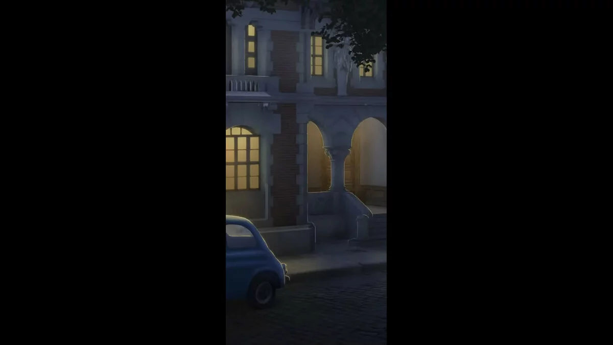 Девушка доделывает работу и выходит из Дома, когда рабочий день уже давным-давно закончился. На крыльце соседнего здания сидит Шарлотта.