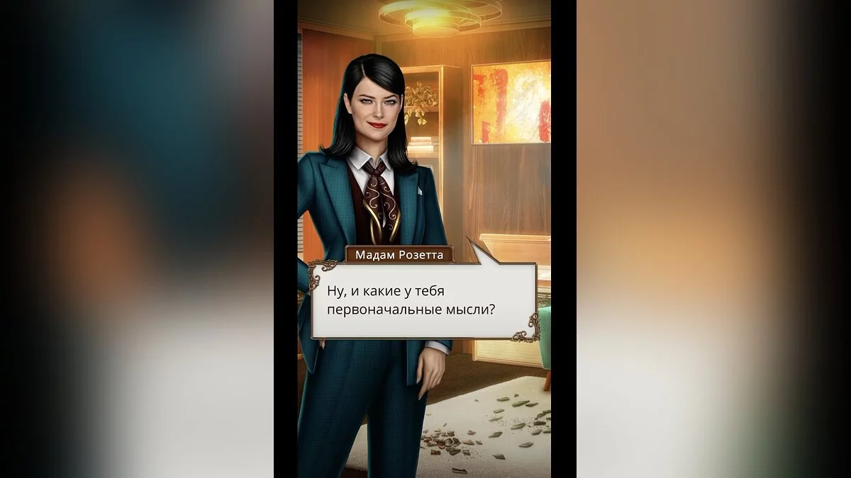 Девушка соглашается помочь и решает задать вопросы, чтобы прояснить ситуацию и понять, с чего начать расследование.
