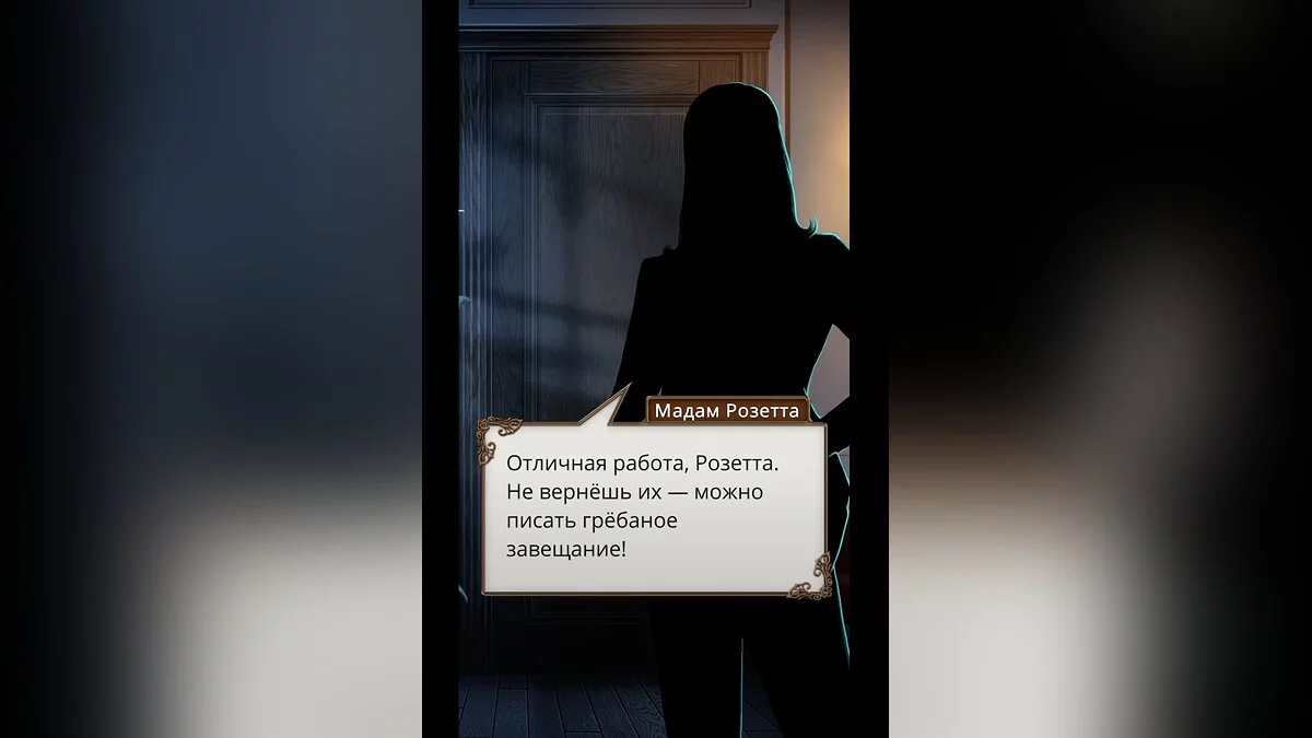 У кабинета девушка слышит ругань мадам Розетты и звук бьющегося стекла. Увидев, что дверь приоткрыта, она замирает в нерешительности.