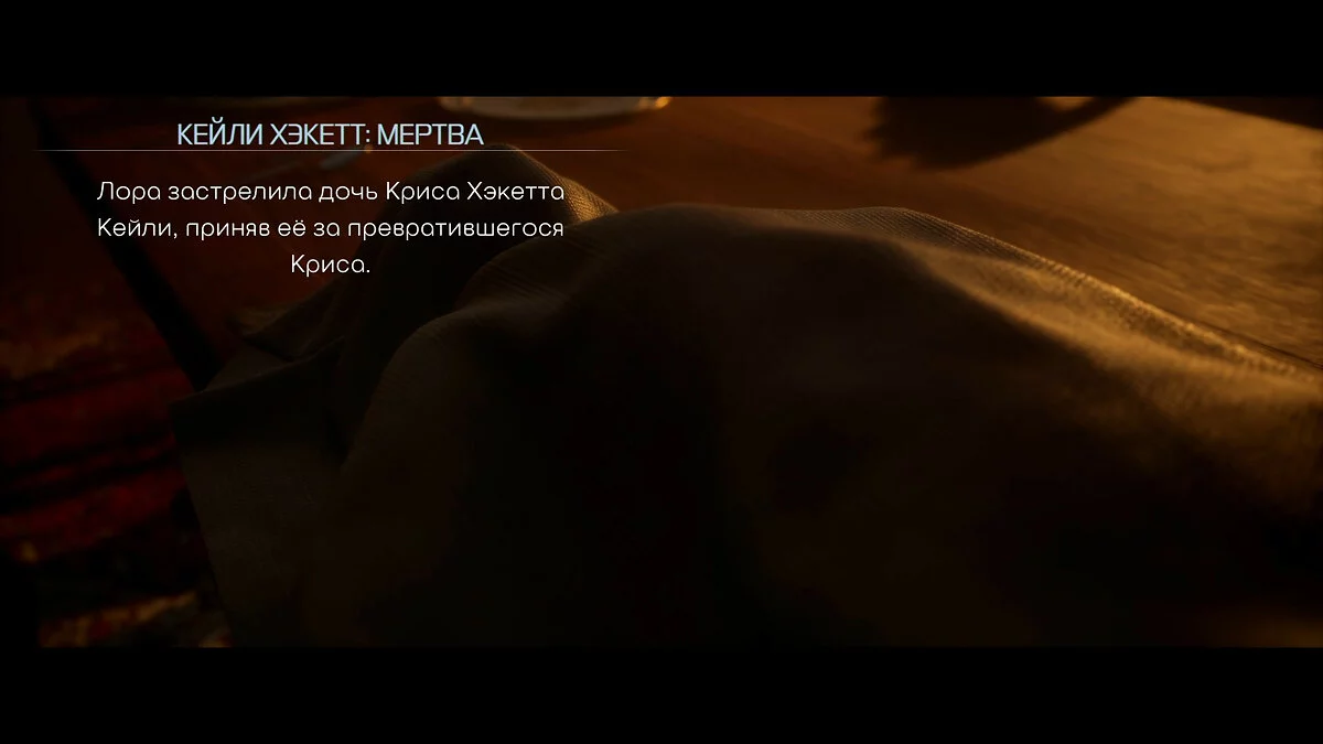 - Лора выстрелила в лицо Констанции в борьбе за дробовик — Лора успешно завершила QTE в битве со старухой (глава 9).