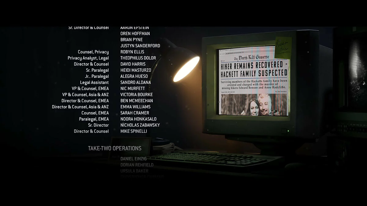 Финальные титры отображаются на фоне компьютера с открытой на нём статьёй. За кадром двое ведущих подкаста обсуждают события, произошедшие в Хэкеттс Куори, и изучают найденные героями доказательства. В зависимости от разных условий игрок увидит одну из доступных вариаций: