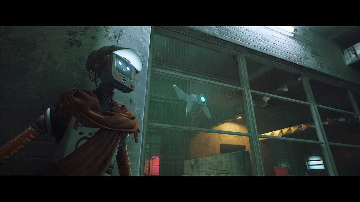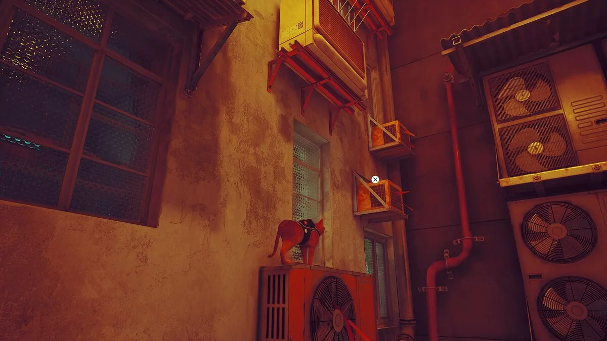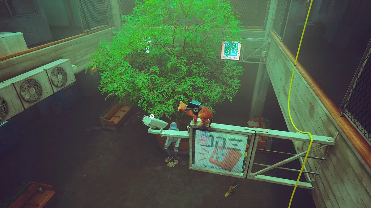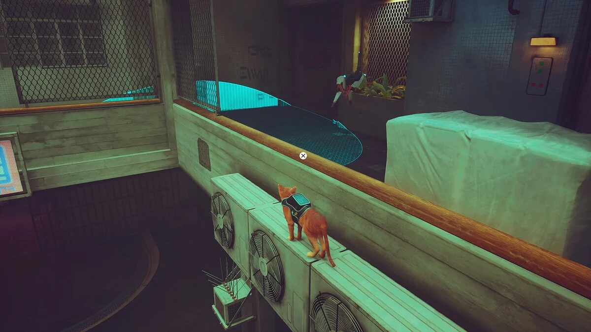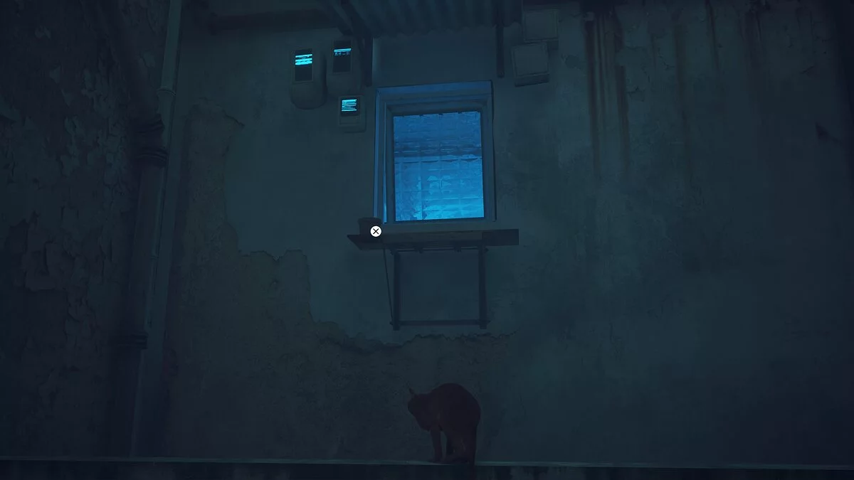 Сделать это не получится, поэтому котику придётся сломать три камеры, каждая из которых находится на втором этаже. Два устройства расположены над роботом рядом с перилами, а третье — на стене.