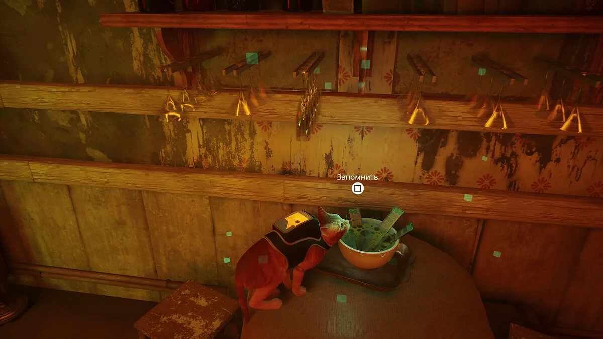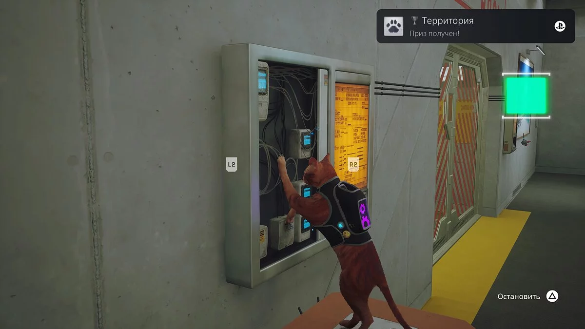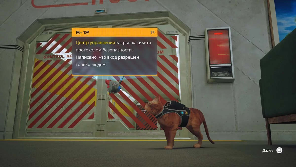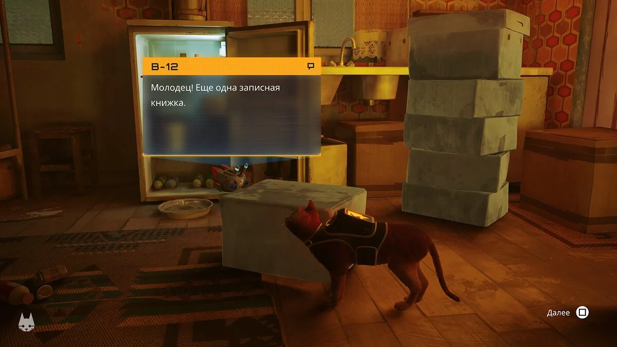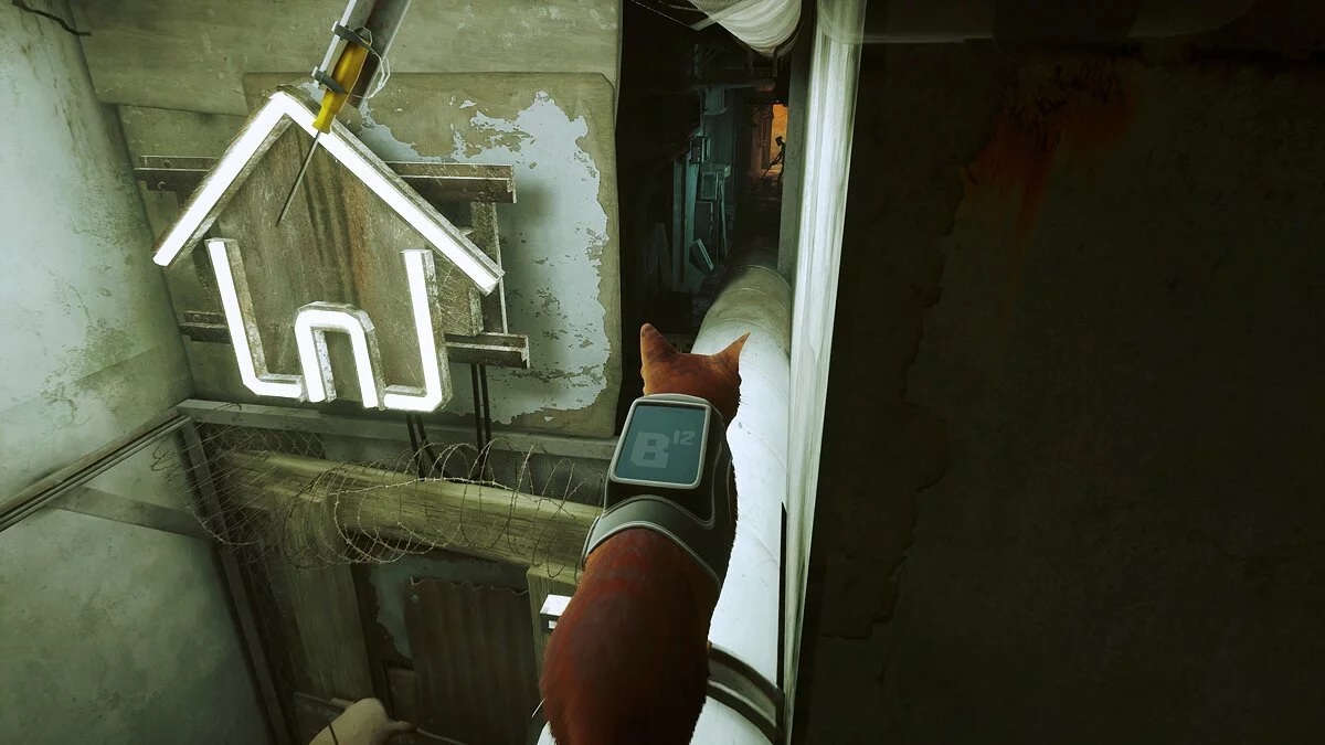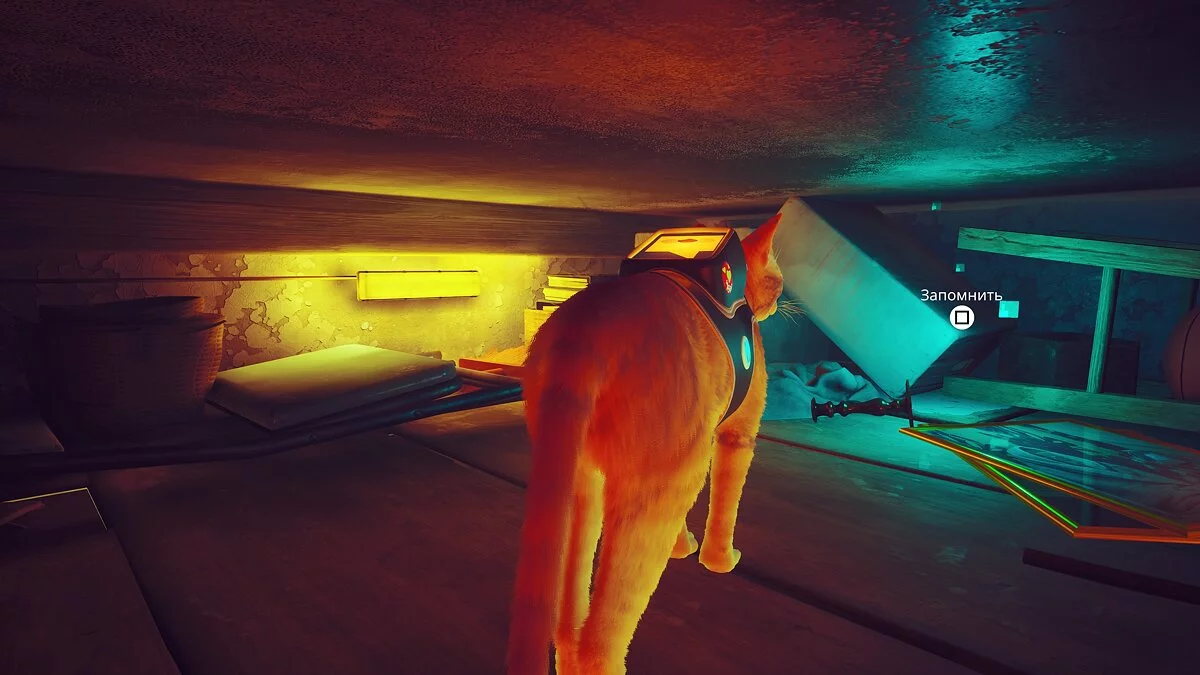Внутри B-12 активирует ещё одно воспоминание. Если ранее удалось отыскать каждое из них, в этой секции откроется достижение «Я помню!». Цвет костюма котика также будет изменён.