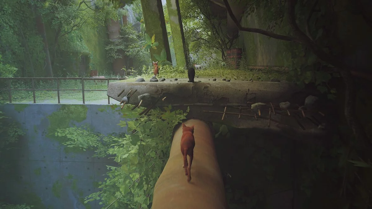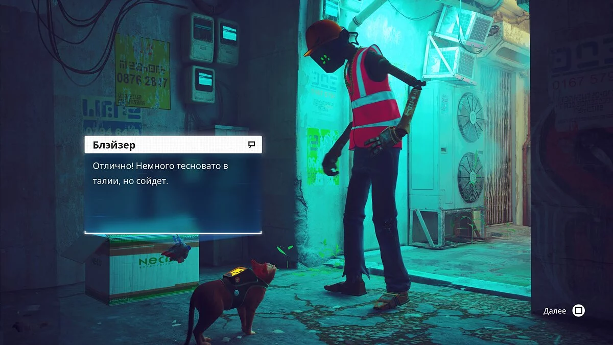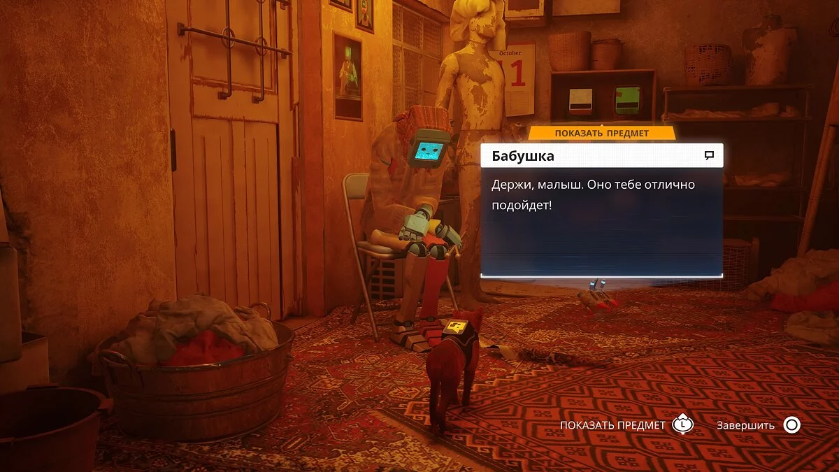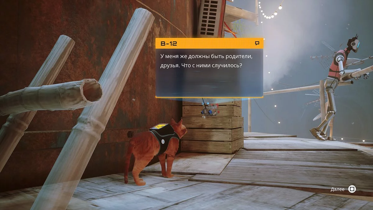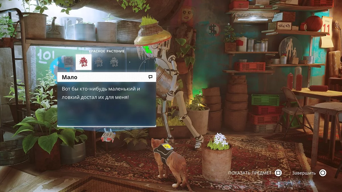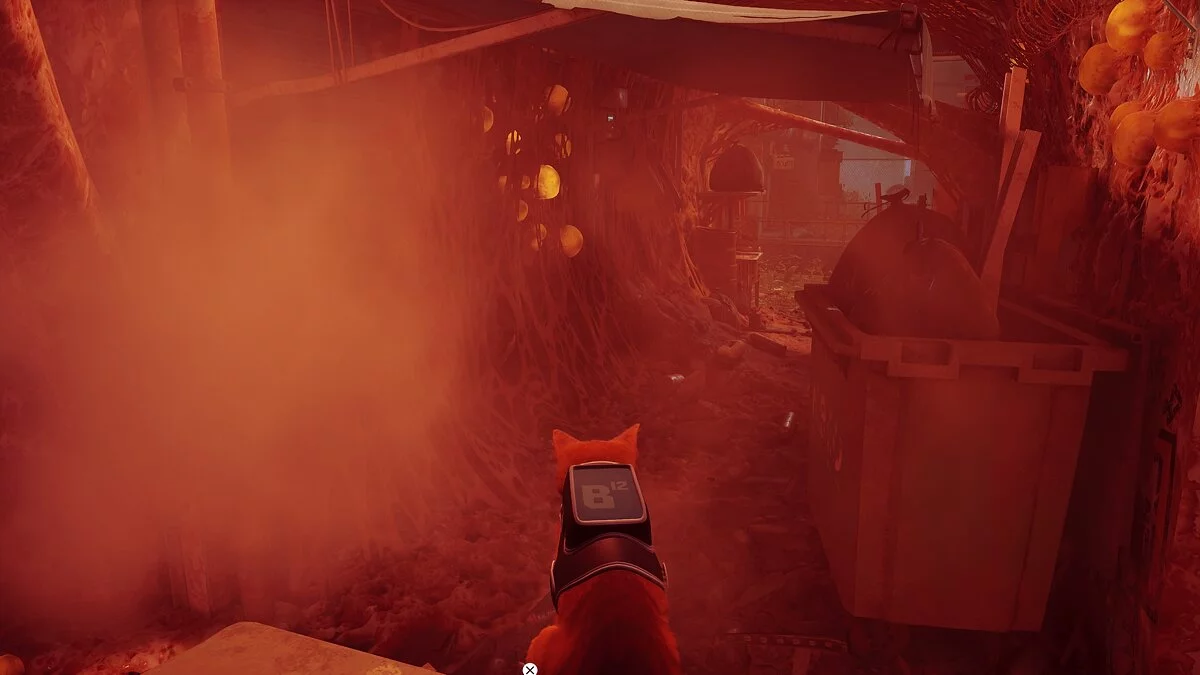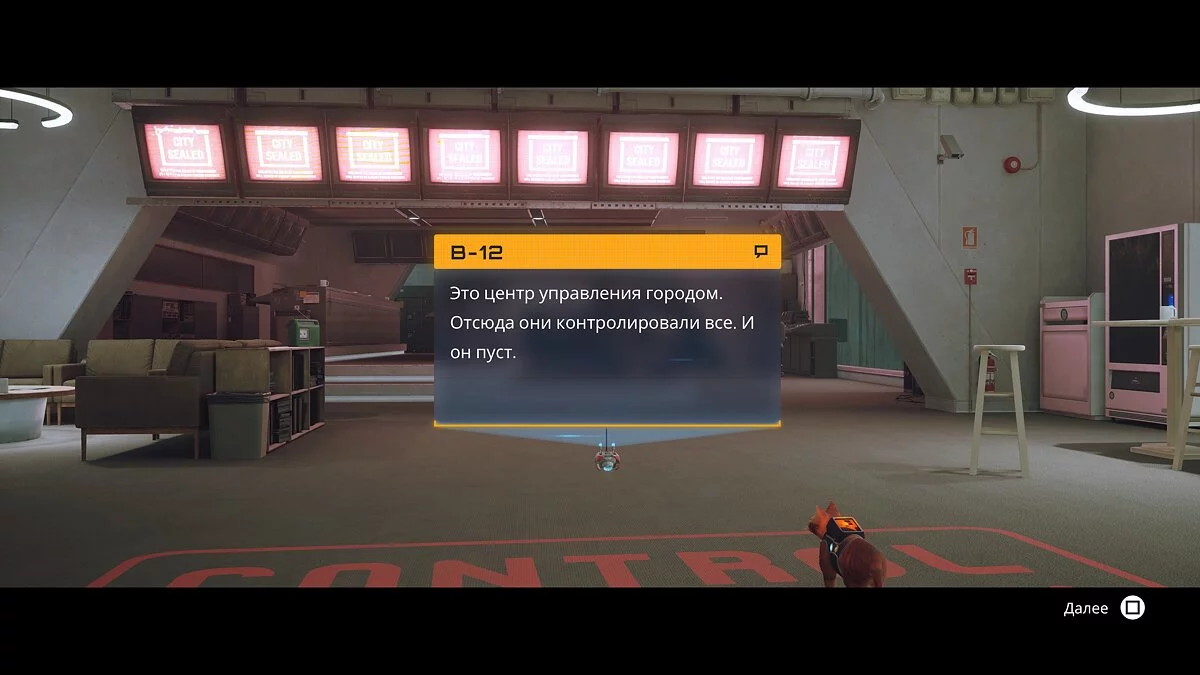 Внутри B-12 активирует ещё одно воспоминание. Если ранее удалось отыскать каждое из них, в этой секции откроется достижение «Я помню!». Цвет костюма котика также будет изменён.