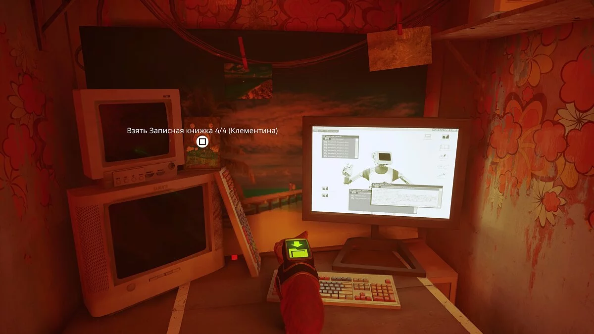 - Клементина. Выходим из квартиры Момо и перебираемся на другую сторону трущоб по крышам. Внутри помещения найдём предмет возле компьютера.