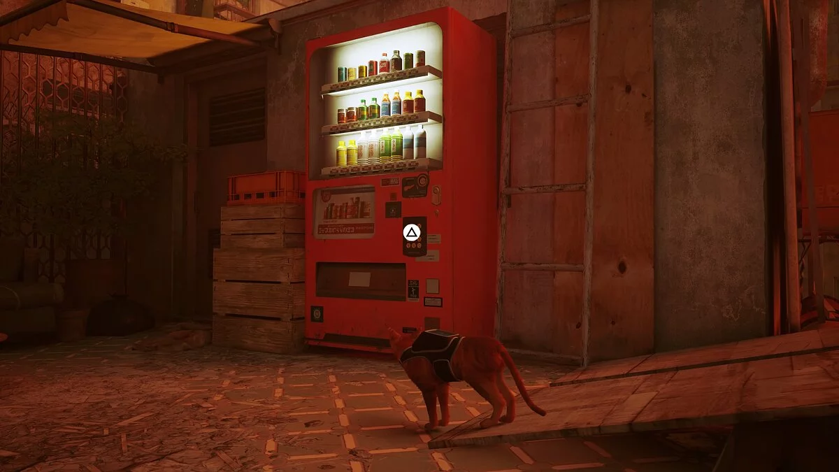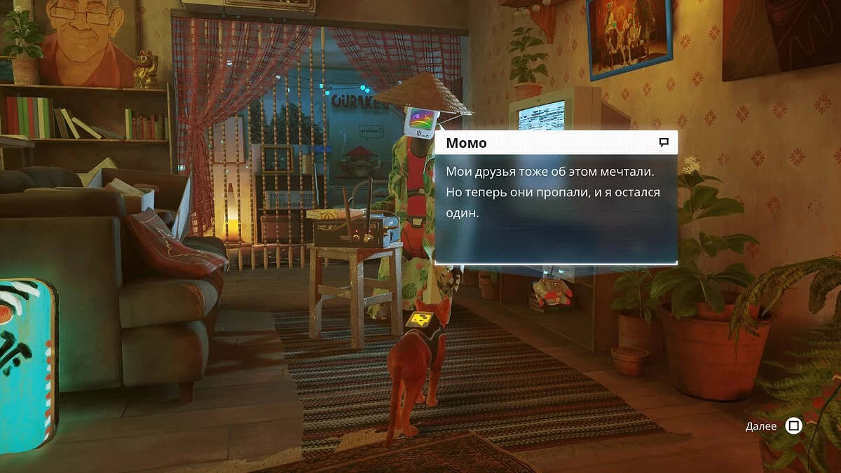 Рядом с роботом активируем торговый автомат и получаем энергетический напиток. Хранитель подскажет местоположение Момо. Забираемся на крышу.