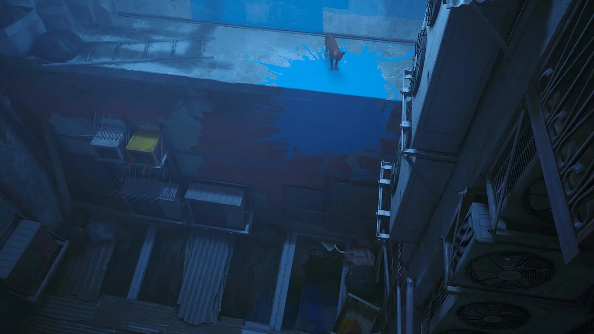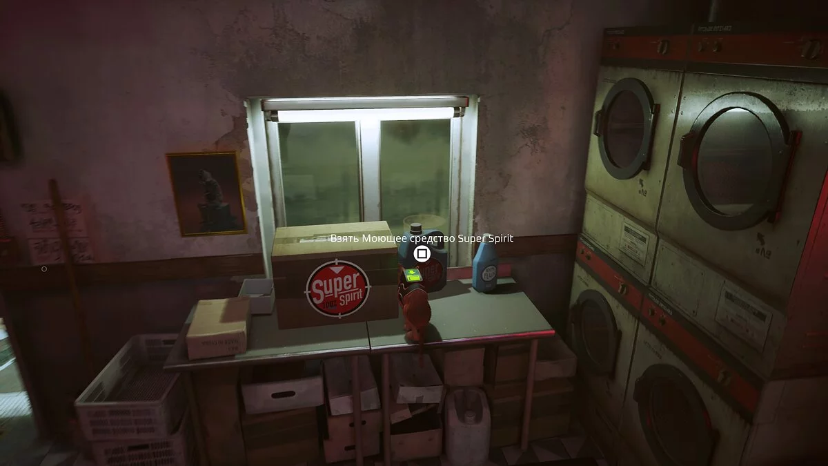 Здесь можно помяукать на устройства, которые перекидывают банки. Они уронят краску на землю и из дома выйдет недовольный работник прачечной. Это действие разблокирует путь в его апартаменты.