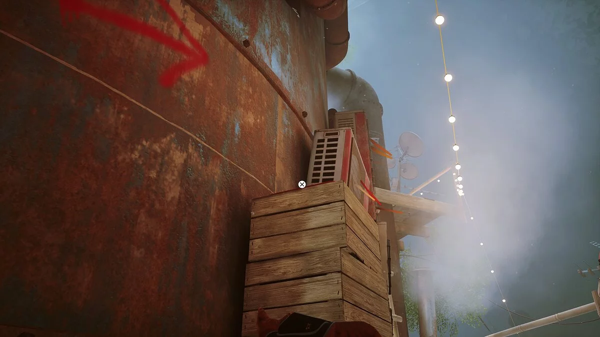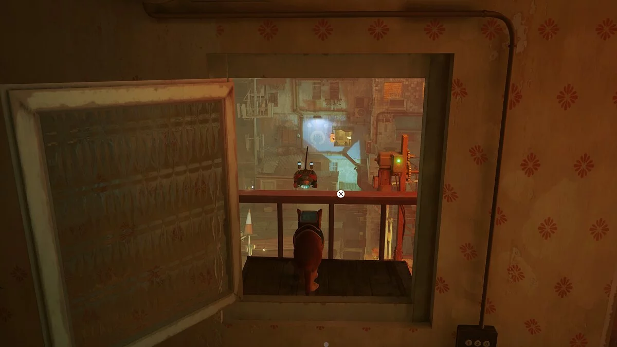 - Збалтазар. От квартиры Момо двигаемся налево к роботам, которые ранее перекидывали банки. Идём в сторону синего баннера по крышам. Отключаем вентиляцию и спрыгиваем внутрь квартиры. На стопке коробок найдём предмет. Для этого достаточно залезть на них и спрыгнуть, чтобы уронить записную книжку на пол.