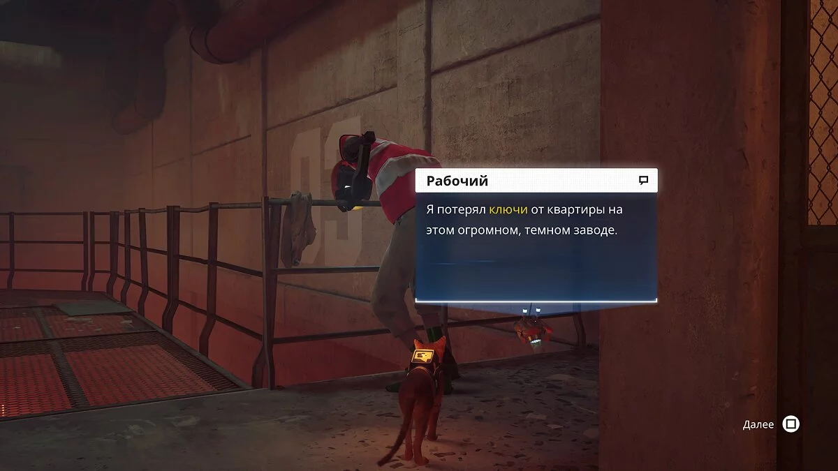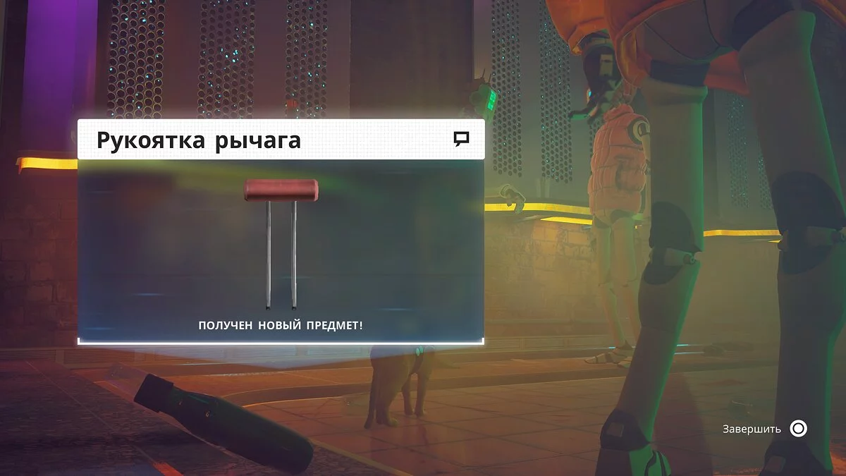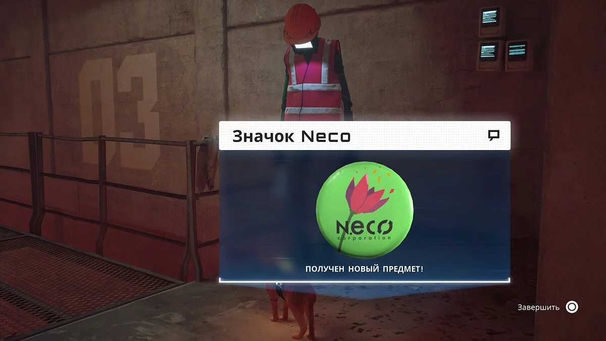 Возвращаемся к рабочему и передаём ему ключи. В награду получим значок Neco. Если ранее были собраны все подобные предметы, то игрок откроет достижение «Значки».