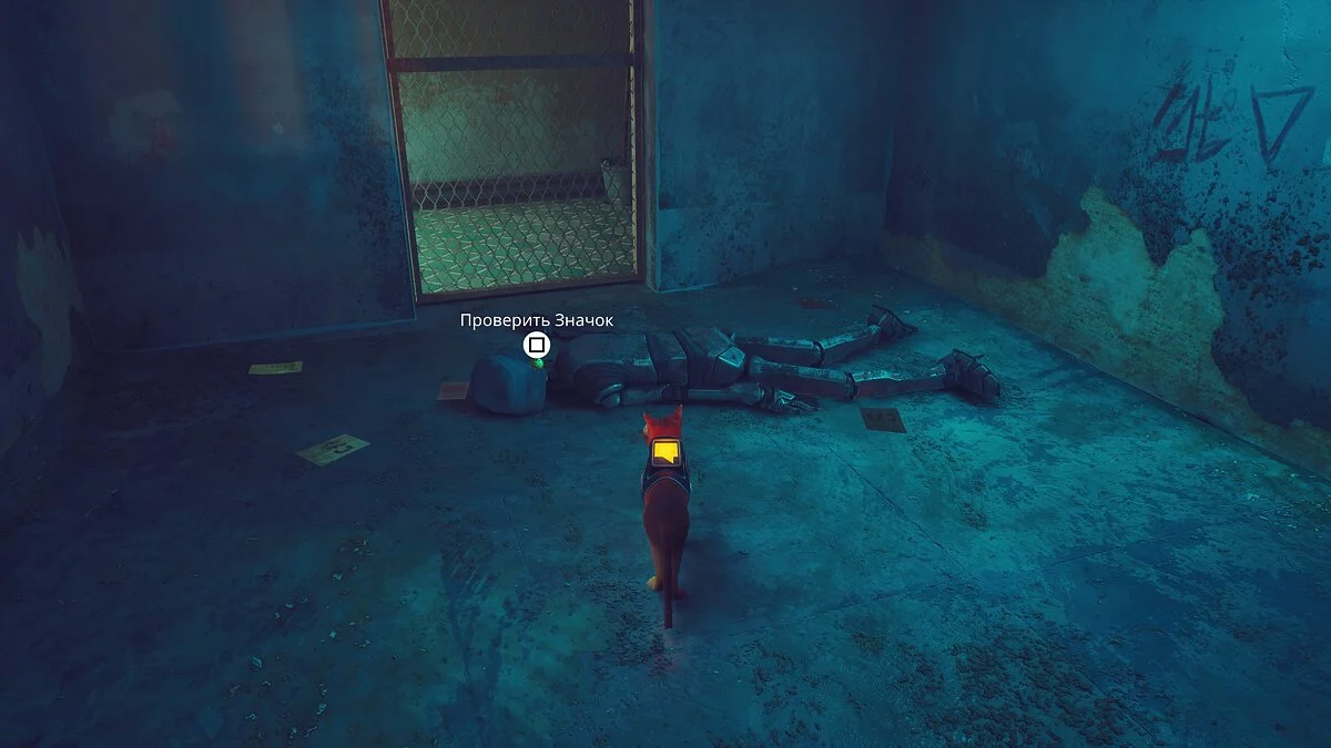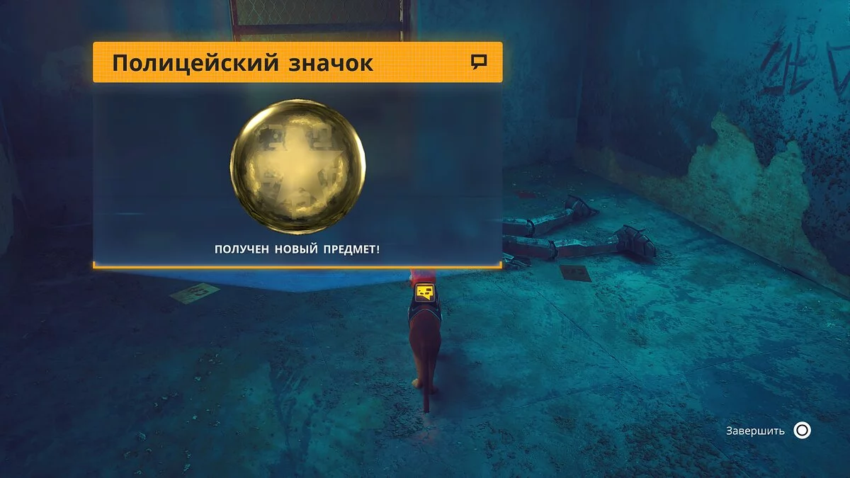 Осматриваем мёртвого робота и получаем полицейский значок.