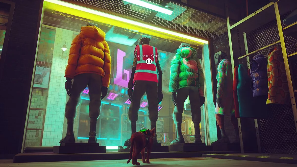 Возвращаемся к голограмме. Заходим в магазин слева. Вывеска заведения подсвечена жёлтым цветом.