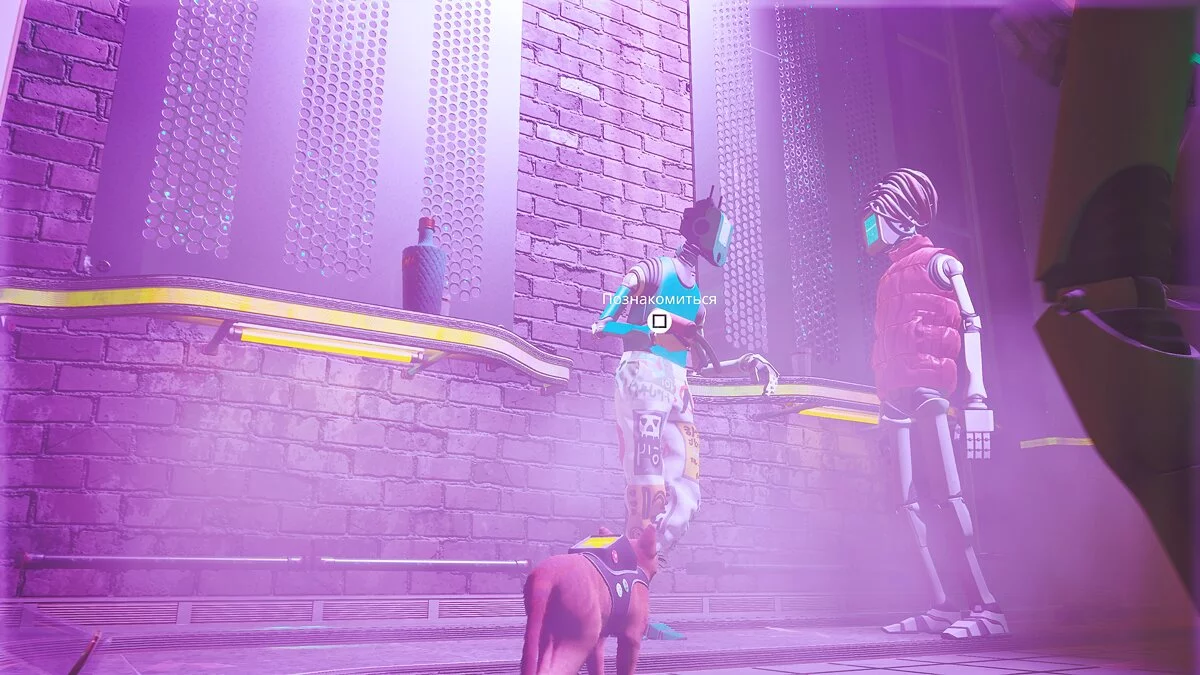 Двигаемся по трубам до открытого окна. Разговариваем с роботом и залезаем в клуб.