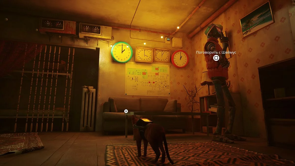 После повторного возвращения в трущобы вы встретите Момо, который отведёт отведёт котика из бара в квартиру Дока и Шеймуса. Сын изобретателя давно потерял надежду отыскать отца, однако главный герой сможет помочь роботу в дальнейшем. Для этого придётся попасть в секретную лабораторию Дока. Терминал, открывающий потайную комнату, находится за левой картиной на полке.
