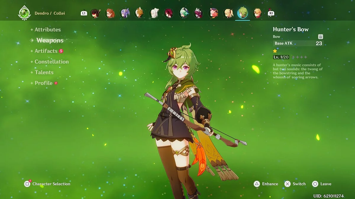 Все способности героини напрямую связаны с Дендро уроном, что является хорошей основой для последующих реакций. Кроме Коллеи подобную базу для комбо может создавать только пятизвездочный Тигнари — также Дендро персонаж.