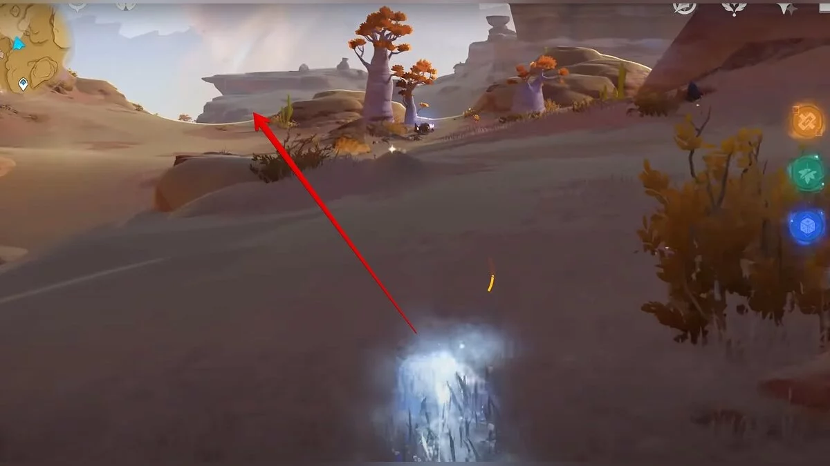 Чтобы получить эту награду, вам нужно уничтожить перекати-поле. Они постоянно перемещаются, поэтому вам придётся использовать спринт, чтобы догнать растение (для этого вы также можете воспользоваться лучником). Их можно встретить по всей пустыне Сумеру. Конкретное место, где много перекати-поле, мы указали на карте.