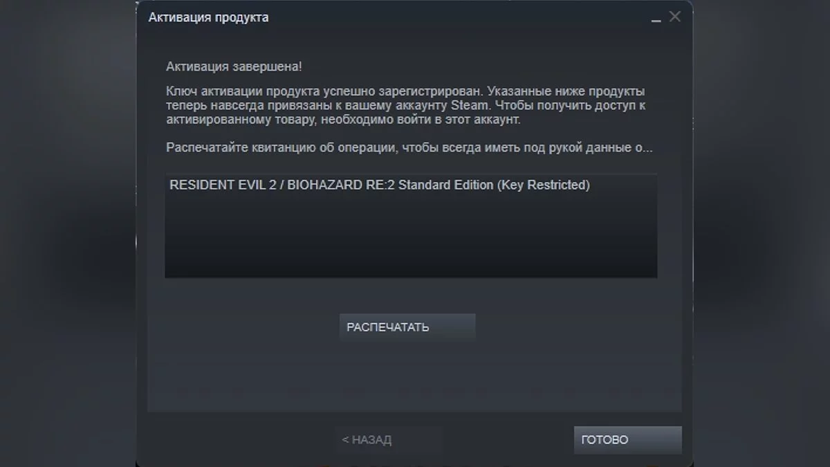 Итак, оплата прошла успешно. Не стоит закрывать это окно — оно автоматически обновится, и на экране появится ключ активации приобретённой игры.