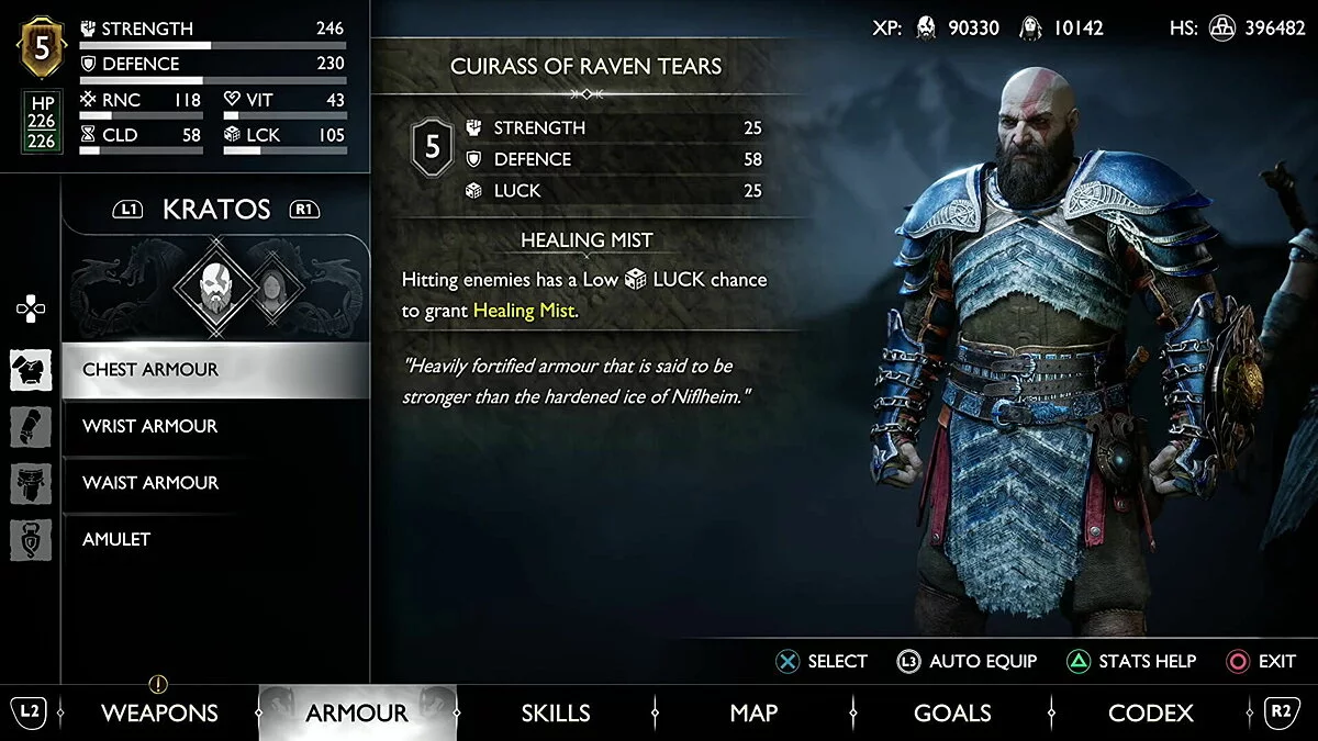 Комплект доспехов — отличная награда за труды. Этот сет помогает в исцелении Кратоса, а его получение не занимает много времени. Броня станет отличным выбором на средних и поздних этапах игры. Два предмета из набора доспехов дают 15% дополнительного лечения, за три — 30%.