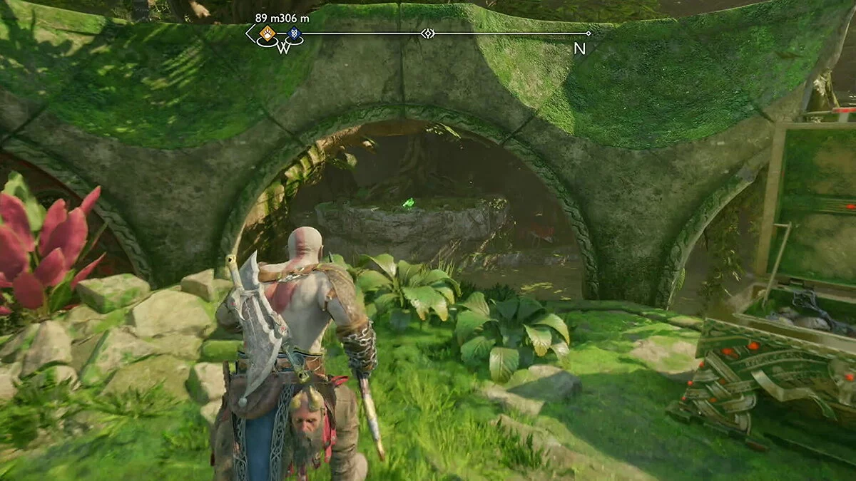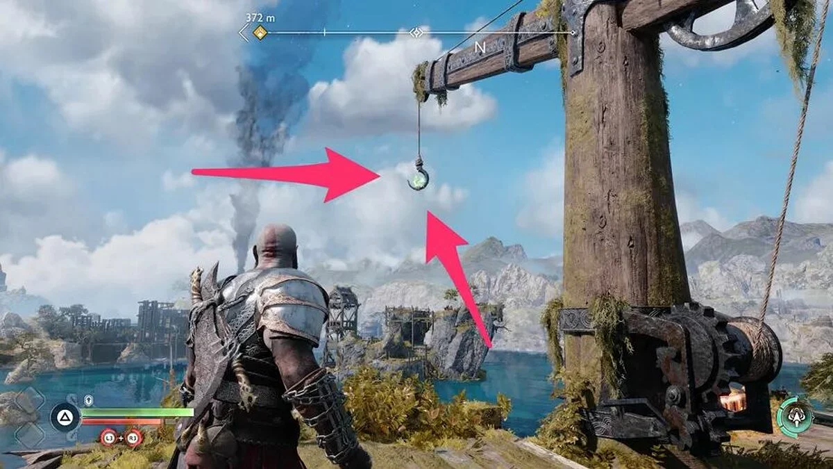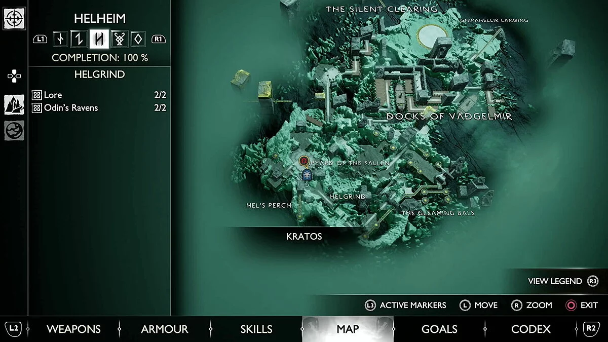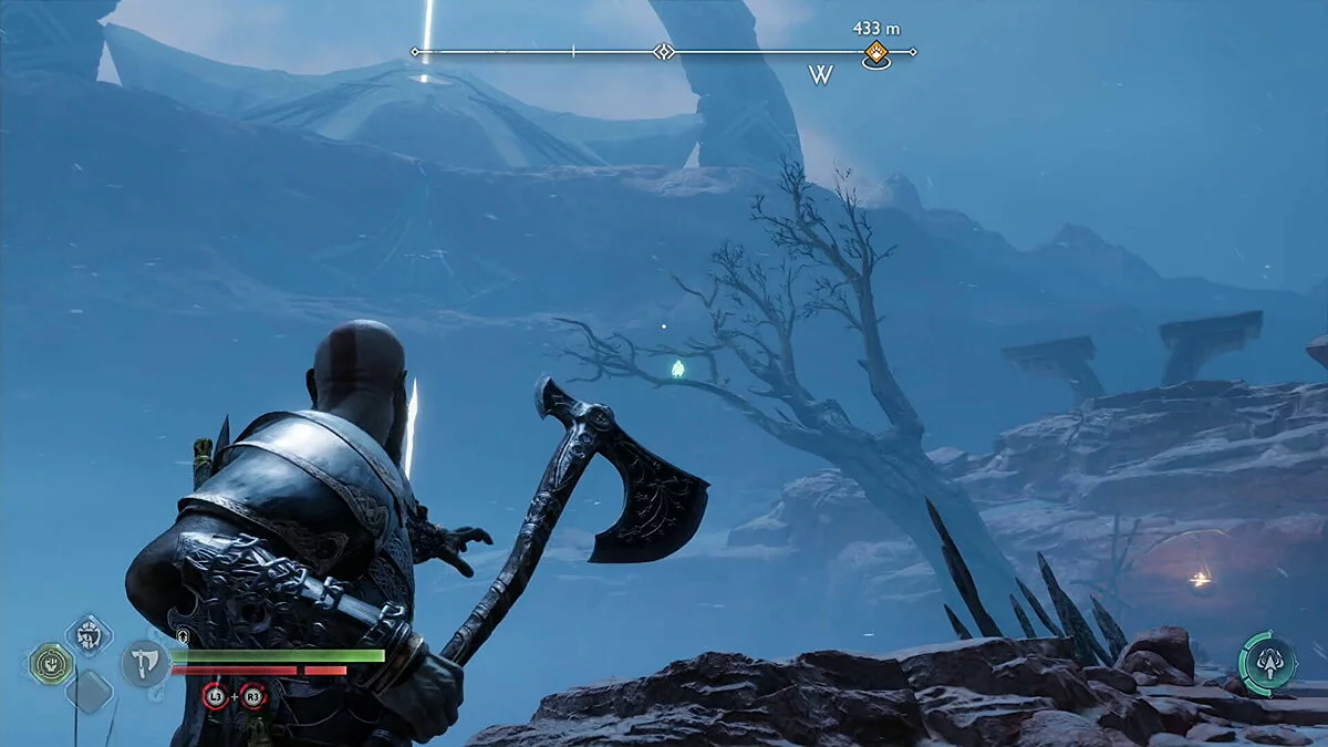 Первый Ворон в Хельгринде находится прямо рядом с Мистическими Вратами, через которые вы проходите, возвращаясь в Хель с Атреем в рамках прохождения сюжета. Он летает кругами слева от столба, который нужно уничтожить копьем.