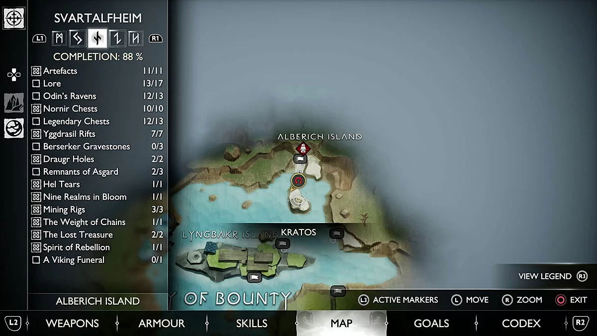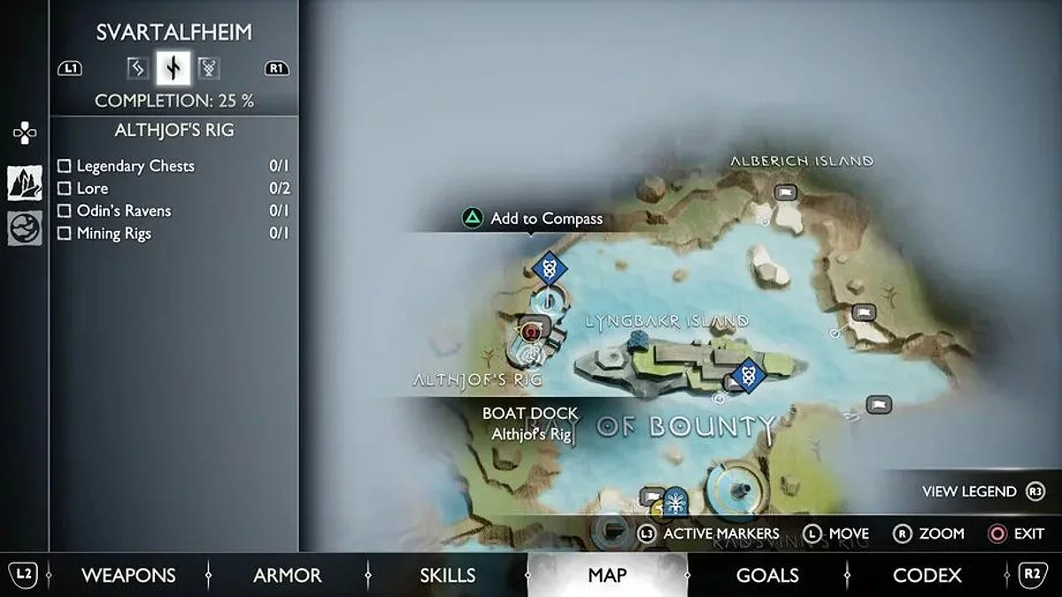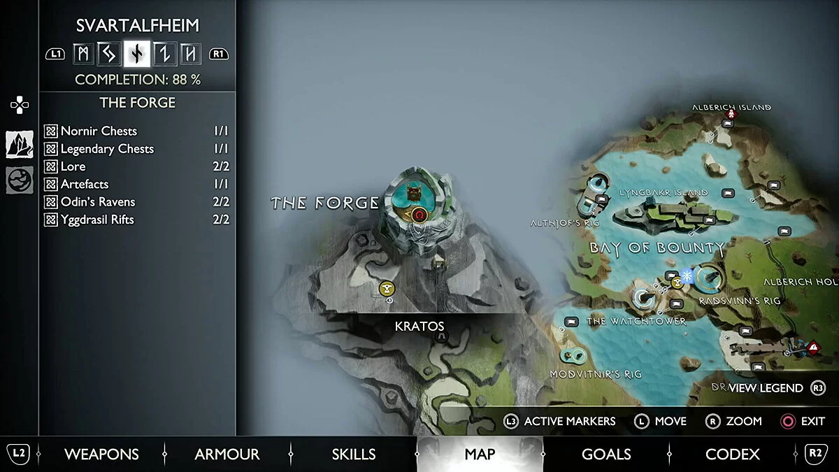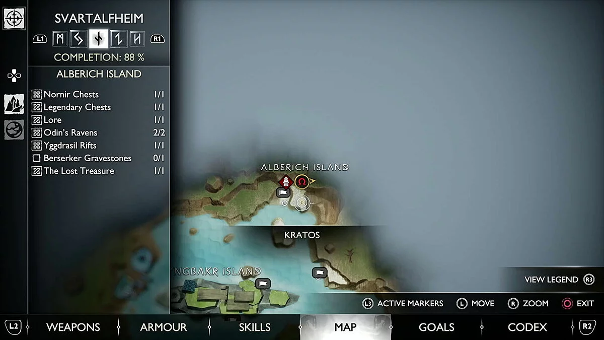Попасть в область с этим вороном вы сможете только после того, как приобретете оружие в Кузнице в Свартальвхейме с Броком в рамках сюжетной истории. Используйте его слева от сундука на острове, чтобы подняться наверх.