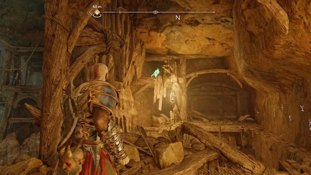 Сердцевина — это последняя область в Свартальвхейме, по крайней мере, при первом посещении. Именно здесь вы спасете Тюра, скандинавского бога войны. Следуйте по пути через шахту, пока не дойдете до головоломки, где Кратос и Атрей должны разделиться. Когда доберётесь до другой стороны, вы должны увидеть дверь справа от вас, которая ведет к Тюру, и место, где вы можете пройти вдоль стены. Если вы продолжите смотреть влево, то увидите птицу, сидящую на разрушенных полках.