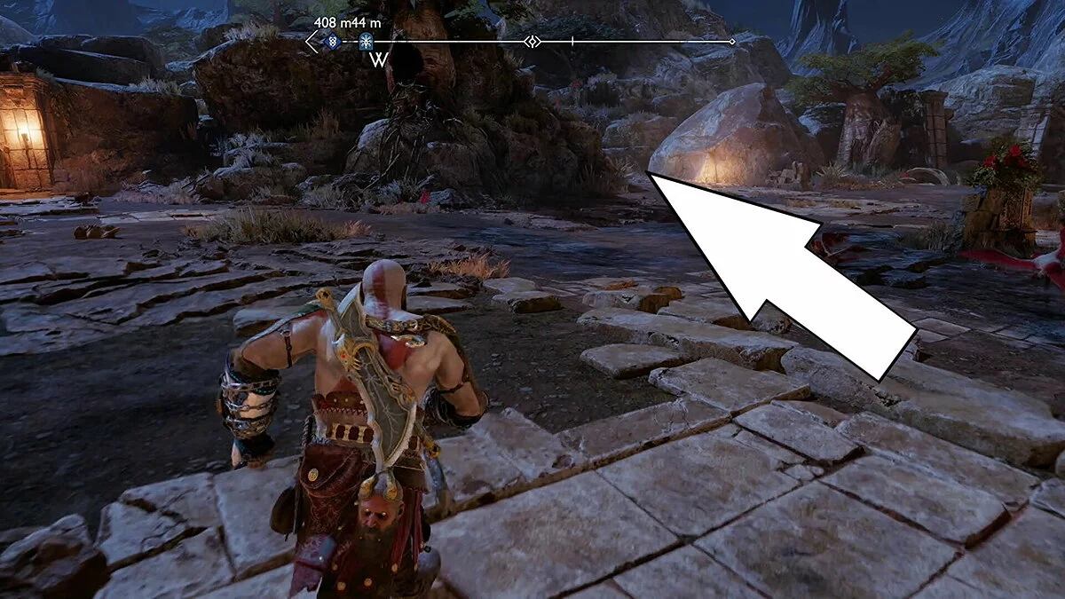 Доберитесь до статуи Гребца в Мидгарде. Сюда вы можете попасть, повернув направо у сломанной части статуи Тюра в районе Берега Девяти. Идите вперед по квесту, пока не убьете кентавра, затем поднимитесь по льду и потяните гигантскую цепь с другой стороны. Это откроет второй набор лестниц. Подойдите к замерзшему кораблю и посмотрите на статую Гребца, расположенную справа от вас. Вы увидите Ворона Одина, сидящего на камне выше колена статуи.