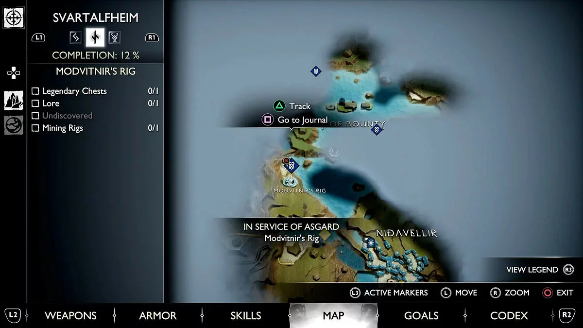 Первую половину Семени Муспельхейма можно найти сразу после прохождения Нидавеллира (Nidavellir) во второй главе. Она находится в локации Машина Модвитнира (Modvitnir's Rig) на западе Свартальвхейма.