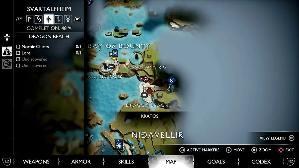 Вторую половину Семени Муспельхейма можно получить только после того, как вы завершите десятую главу и получите очень важный предмет, который позволит вам добраться до сундука. Плывите к локации Драконий берег (Dragon Beach) на востоке Свартальвхейма.