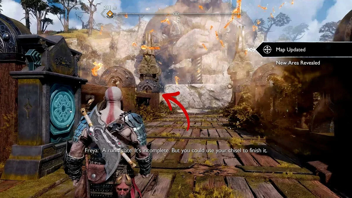 - Награда: 100 опыта Кратоса, 100 опыта компаньона, 4 окаменевшая кость, 2500 рубленого серебра, 250 божественного пепла, 1 тлеющие угли.