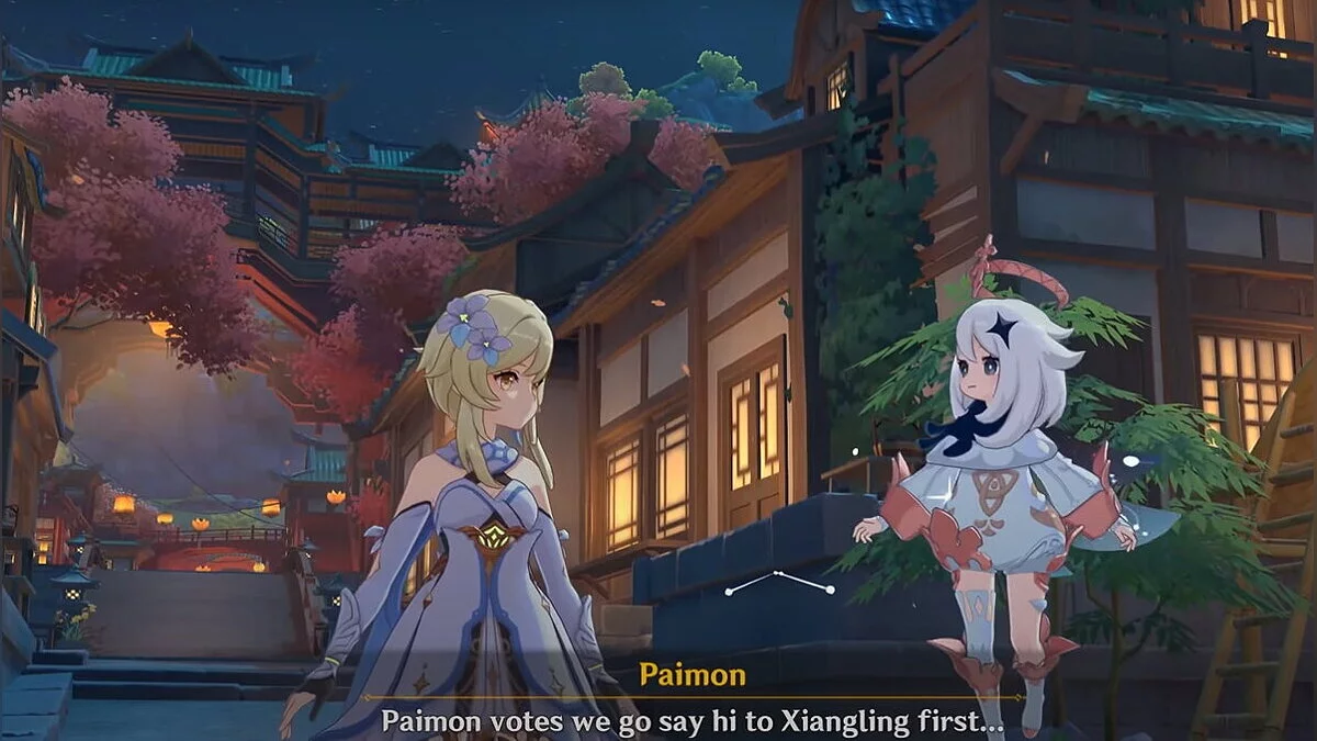 После видеоролика телепортируйтесь в гавань Ли Юэ и пройдитесь вместе с Двораком до рынка.