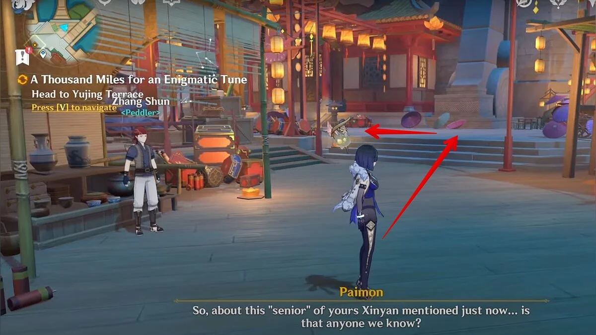 Проведите диалог с Хранителем облаков, а затем отправляйтесь к мадам Пин, которая живёт в Ли Юэ.