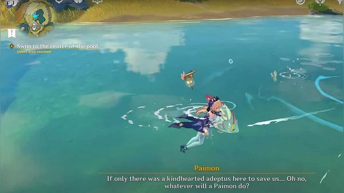 Поговорите с девушкой снова, а затем плывите на середину пруда.