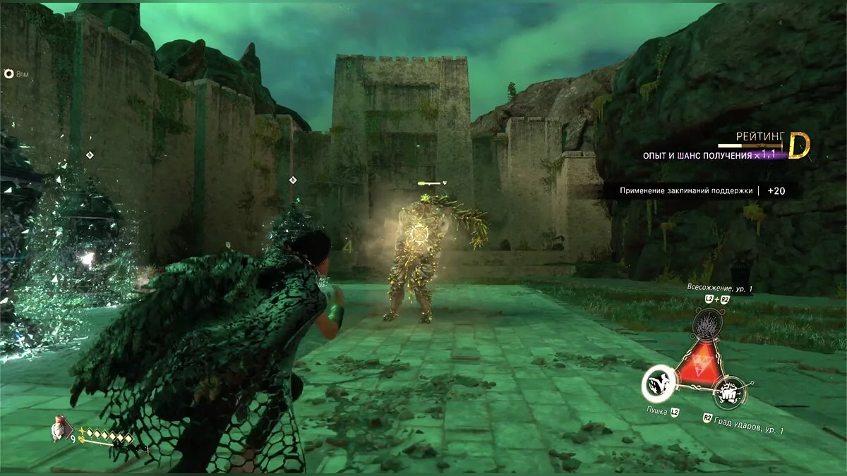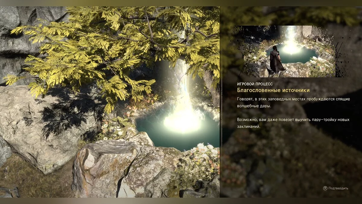 Единственное, что действительно полезно найти в открытом мире — благословенные источники. Они открывают новые заклинания, которые иначе вы не получите. К сожалению, для поиска придется пробежаться по «вышкам» и разблокировать все точки интереса, зато ваш арсенал расширится. Дополнительных испытаний не будет — просто найдите источник и прыгните в него.