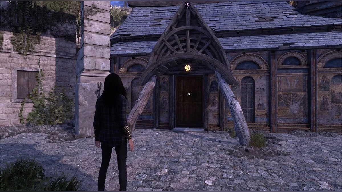 На этот раз вы открыли прыжки. Это очень поможет в паркуре. Перепрыгните ближайшую стену и увидите приют паломника — убежище, в котором вы уже отдыхали ранее. Также это точки для быстрого перемещения, поэтому обязательно заходите внутрь, если встречаете их по пути.