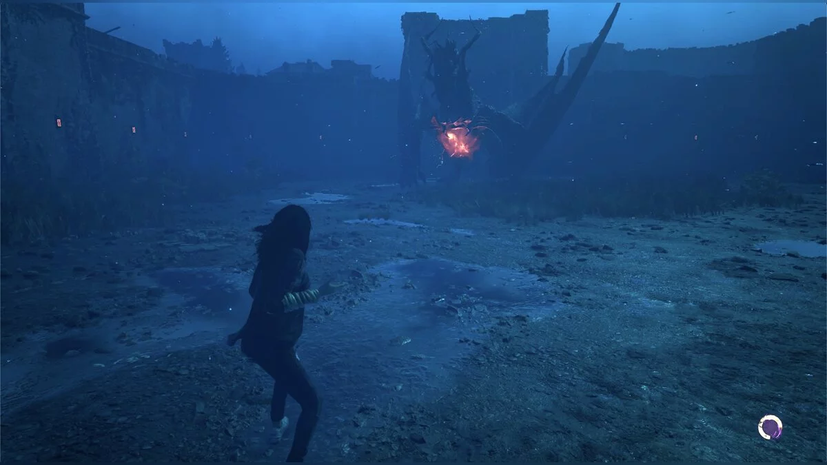 Идите вдоль реки. Здесь вы впервые столкнетесь с зомби — людьми, попавшими под влияние токсичного тумана. Это рядовые противники, с которыми очень легко справиться. Чуть дальше будет ваш первый благословенный источник. Окунувшись, вы узнаете совершенно новое заклинание, которое не добыть другим путем. Пожалуй, источники — самое ценное, что есть в открытом мире, но и добраться до них непросто.