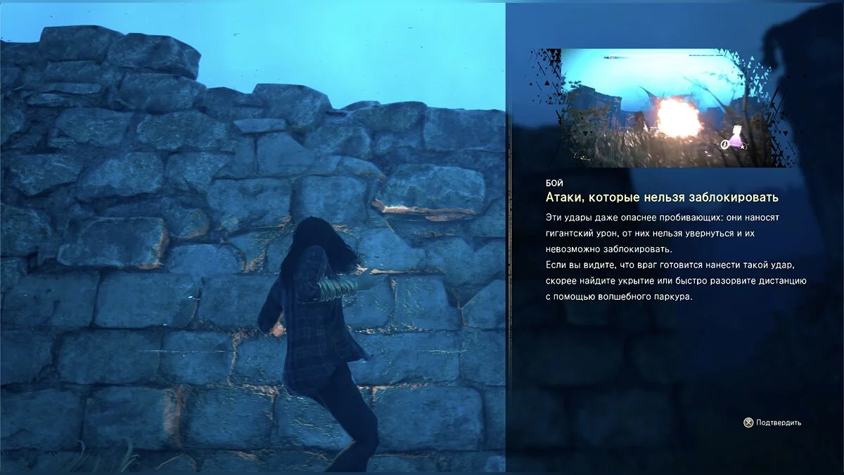 Дракон активно бьет хвостом, однако от этого удара легко увернуться. Здоровье монстра падает достаточно быстро, кроме того, вы параллельно проходите обучение. Когда игра расскажет про неблокируемые атаки, спрячьтесь за каменной стеной и подождите, пока монстр перестанет изрыгать пламя. После этого ящер начнет использовать лапы для атаки. Цельтесь в горящую огнем грудь — это самое слабое место. В процессе дракон еще несколько раз будет плеваться огнем, прячьтесь за стенами.
