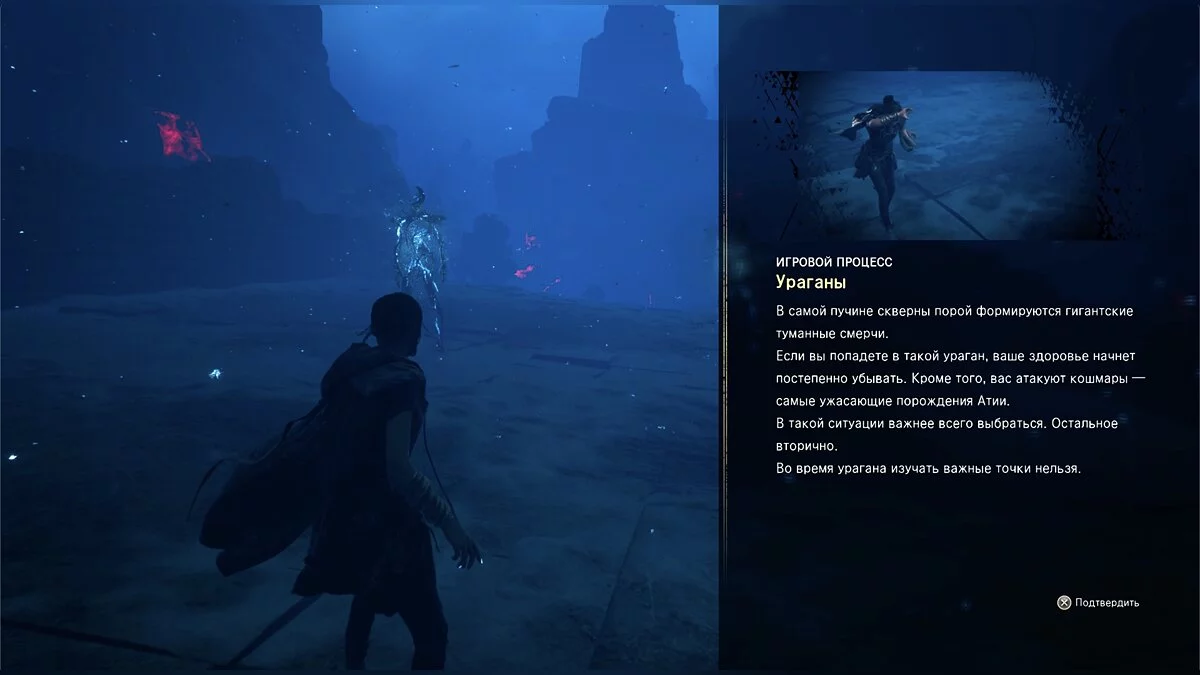 Во время урагана нельзя изучать точки, а здоровье героини будет постепенно снижаться. Единственное спасение — бежать к маркеру цели. Оказавшись в пещере, Фрей решит передохнуть и сделае привал.