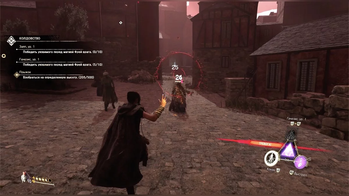 После боя выучите заклинание паркура и убегите от новой группы врагов. Попав в опустевший город, можете собрать доступные ресурсы, после чего идите в убежище.