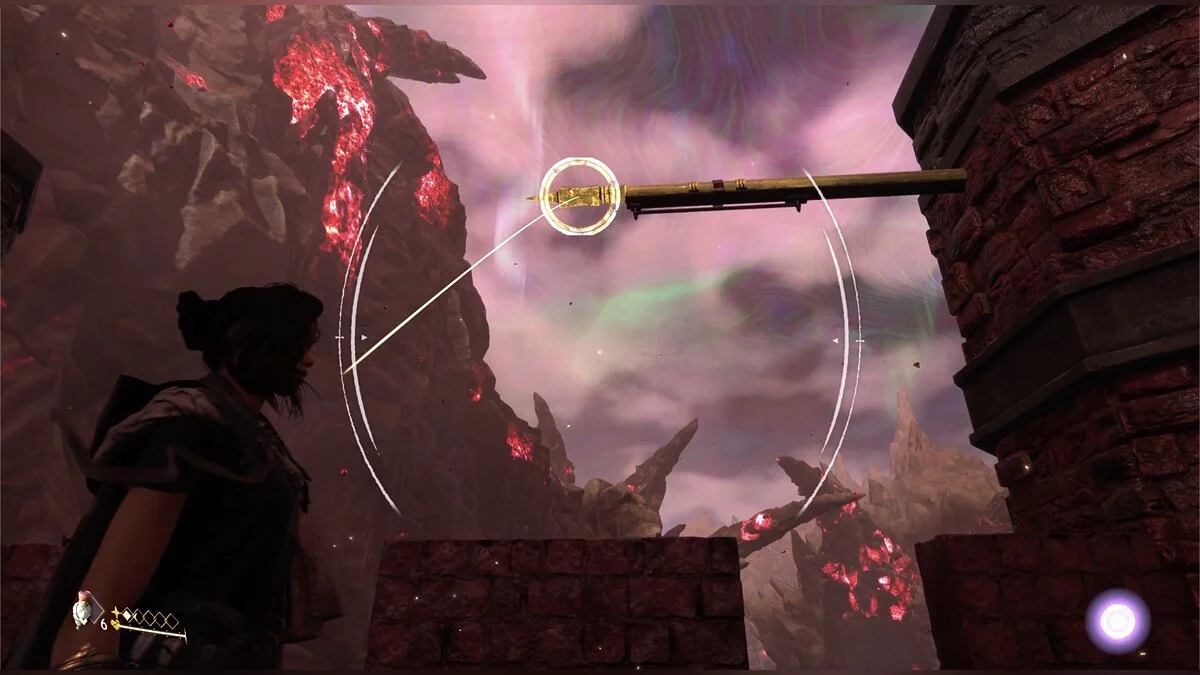 Пообщайтесь с браслетом и выбирайтесь из замка. Вас научат новой механики перемещения — с использованием притягивания к определенным объектам. Когда появится надпись, что быстрые перемещения снова доступны, сразу же телепортируйтесь в Ципаль.