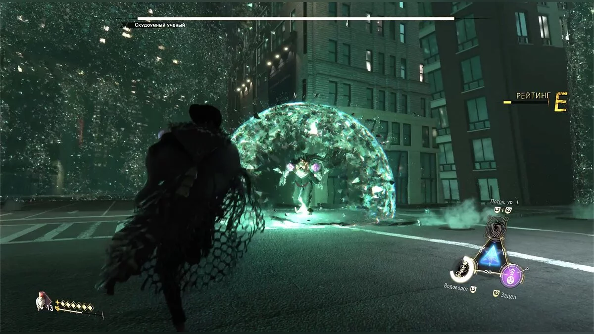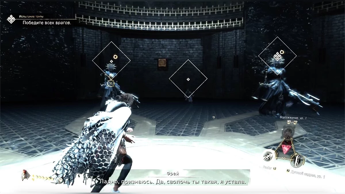 Как только у монстра кончится здоровье, запустится кат-сцена, но не расслабляйтесь. Ученый оживет с полным здоровьем и станет гораздо агрессивнее. К уже привычным атакам добавятся дезориентирующие — Фрей будет терять зрение, слух или способность атаковать. Эффекты временные, но неприятно усложняют битву.
