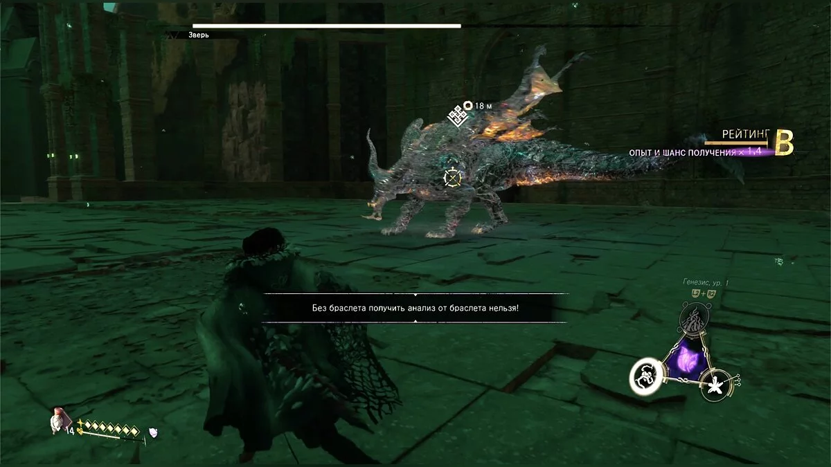 Монстр создает вокруг себя защитный купол, который дезориентирует Фрей, а также бьет волнами энергии. Атакуйте заклинаниями Прав — к ним у ученого уязвимость. Иногда босс выпускает самонаводящиеся сферы — старайтесь уворачиваться. Главная фишка противника — скорость перемещения и невидимость. Из-за этого его крайне сложно обездвижить — ученый постоянно уворачивается.